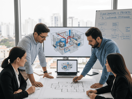 Equipe experiente e capacitada para realizar a instalação da infraestrutura de ar-condicionado com precisão e segurança.